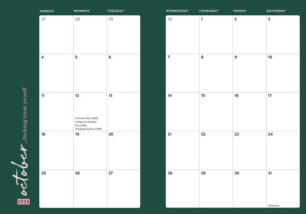 - Monthly and weekly spreads with ample writing space and "sh*t to do" lists