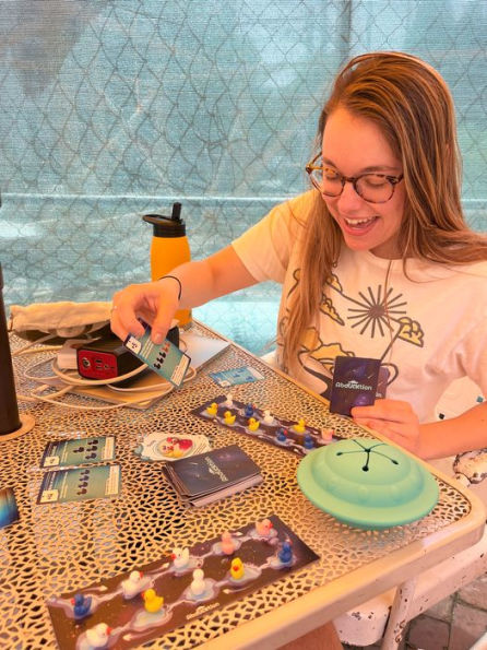 Meet Abducktion, a weirdly strategic duck kidnapping game! Abducktion is a 15-minute light strategy game for grownups (and smart kids) featuring ducks, a UFO, and shape-making logic! Grab adorable miniature ducks from the included 3D UFO and use your action cards to rearrange them into specific formations faster than your opponents.