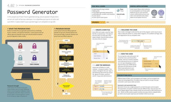 Individual chapters then explore the different languages. Each chapter is divided into a series of practical programming projects that include all the most popular uses, such as building websites, creating games, and designing mobile apps. You'll learn to think like a programmer by breaking down a problem into parts before turning those parts into lines of code. Short, easy-to-follow steps then show you, piece by piece, how to build a complete program. There are also challenges for you to tackle on your own so that you can build confidence before moving on.