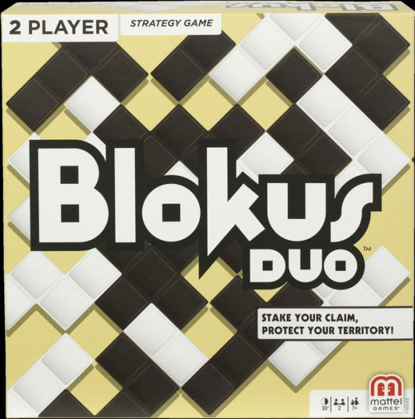 Stake your claim and protect your territory with the Blokus Duo game! This game is the Blokus you know and love but designed for just two players with even faster gameplay. It takes less than a minute to learn, but offers endless strategy and fun challenges for the whole family. Each player gets a set of 21 pieces then takes turns placing them on the board. There's just one rule: each piece you play must touch at least one other piece of the same color, but only at the corners! The goal is to fit the most pieces on the board. The game ends when no more pieces can be placed down, and the player with the lowest number remaining wins! Game includes board and 42 game pieces. For two players, age 7 and up. Colors and decorations may vary.