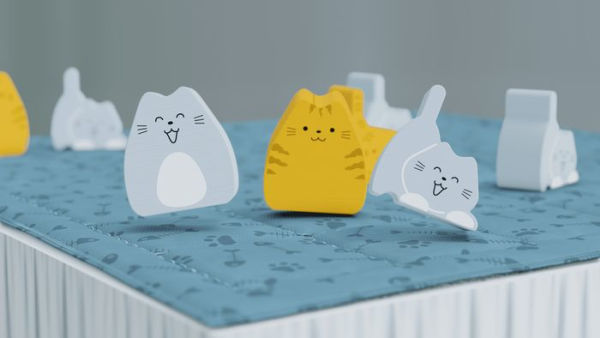 Every time you place a kitten on the bed, it goes “boop.” Which is to say that it pushes every other kitten on the board one space away. Line up three kittens in a row to graduate them into cats… and then, get three cats in a row to win.