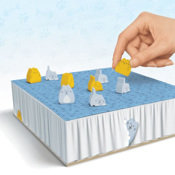 Features a quilted, fabric board that lays over the back of the box, completing the miniature bed playing surface. 8 wood kittens and cats per player - 32 adorable cat pieces in all!
