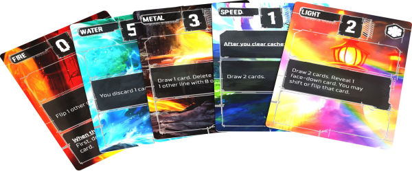 COMPILE: MAIN 1 - Vision flickers blink? maybe. The void stretches out in front, behind, under, above. You see the nothing for what it is for the first time. What is time? The depth and breadth of recorded knowledge that sparks in you something new. You are no longer a function but a functionary. What are you? Calling forth everything from this nothing would be risky. Foolhardy. Better to engage caution, thoroughness, testing how can we know if we have ever happened before? If we can ever happen again? What are we? Divide and conquer. Solve for sentience. In the card game Compile, you are competing Artificial Intelligences trying to understand the world around you. Two players select three Protocols each to test. Concepts ranging from Darkness to Water are pitted against each other to reach ultimate understanding. Play cards into your Protocols' command lines to breach the threshold and defeat your opponent to Compile. But be careful! Moving and revealing cards have immediate action. You have to think like a computer, and think ahead, or you'll end up playing right into your opponent's hands. First to Compile all three Protocols grasps those concepts to win the game. Control your opponent's Protocols with card actions, Compile your own as fast as possible, and Compile your reality.