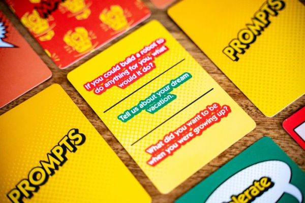 - 141 secret word cards, 9 guess cards, 20 optional prompt cards, 9 card stands