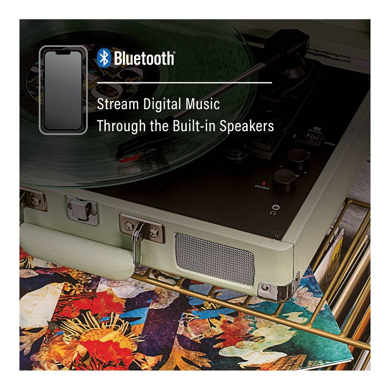 - BLUETOOTH RECORD PLAYER: Bluetooth connectivity lets you easily play your albums through wireless speakers or stream your music to the vinyl record player's built-in speakers.