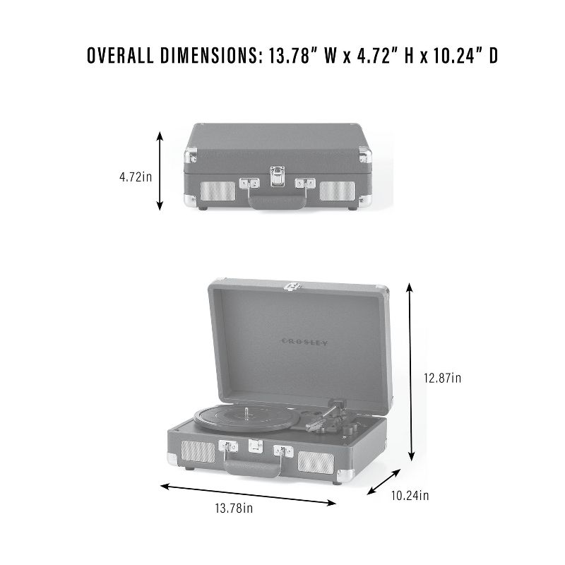 Some say you can’t improve on a classic, but we are here to prove them wrong with the Crosley Cruiser Plus. We took the quintessential Cruiser design and upgraded it with Bluetooth output functionality, so now you can listen to your favorite records on the speaker system of your choice! We retained all the classic features you know and love — the charming portable suitcase shell in a rainbow of colors, three speeds and pitch control for all your listening needs, and a Bluetooth receiver and built-in speakers so you can listen on the go — but with the added option to pair it with your favorite external speakers via Bluetooth output. You asked and we delivered: Classic Cruiser design plus improved functionality is here with the Crosley Cruiser Plus. 13.78”W x 10.24”D x 4.72”H