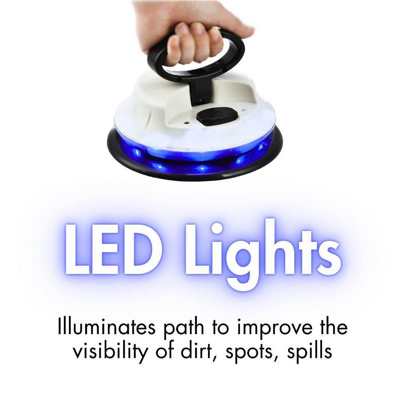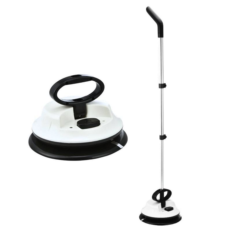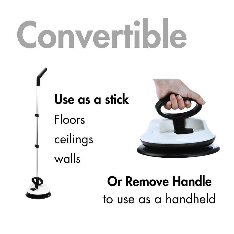 The Ewbank Nifftee is an electric spinner tool for cleaning, buffing, and scrubbing. Use on floors, walls, and other hard surfaces. Disconnect the handle to clean countertops, tiles, bathrooms, mirrors, and furniture. Features LED lights for improved visibility and extendable handle, bringing the height up to 37 inches. Lightweight and compact at 2 lbs. Includes rechargeable battery power source, chenille duster, faux lambswool polishing head, and scour pad.