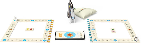 In this abstract strategy game, you'll play ten rounds, score your storefront, and whoever has the most points wins. A smartphone app (device-independent, no download required, no internet required) helps run the auctions. Players earn points from their largest patch of each of six different flower types.