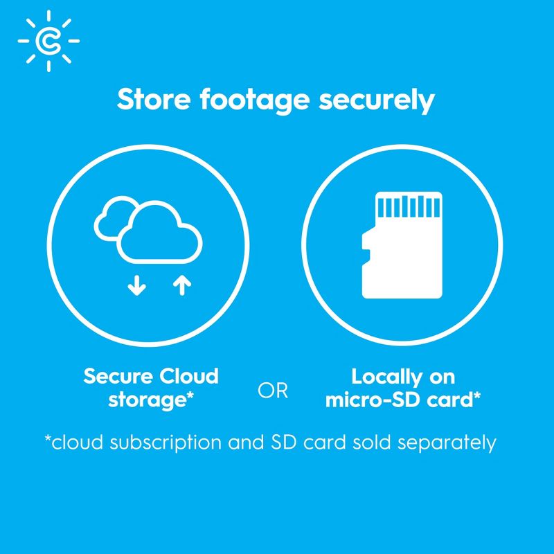 - Multiple Storage Options: These outdoor cameras for home security allow Cloud storage using two-factor authentication or content storage on a built-in SD drive (SD card sold separately; up to 128GB capacity)
