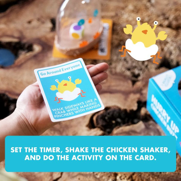 Shake the Chicken to reveal your activity, then quickly perform it before passing the Chicken Shaker to the next player. Dont get caught holding the Chicken when the timer goes off! This game is fast, funny and its different every time. Plus, everyone has an equal chance to winespecially the little ones!