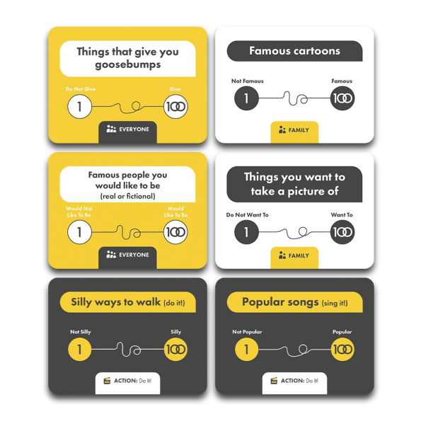 - Choose from Family categories, Everyone categories (still family-friendly but may be too complex for younger kids) and Action categories (where you’ll strike a pose, make a face, sing a song, etc.). Or mix them all together for maximum fun!