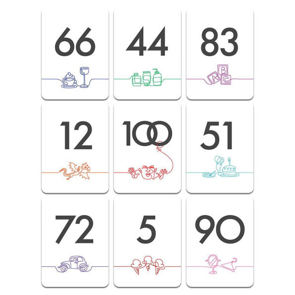 At the start of a round, each player gets a secret number card with a value between 1 and 100. Remember, it’s a SECRET, so of course the other players can’t tell you directly what number they have, and neither can you!