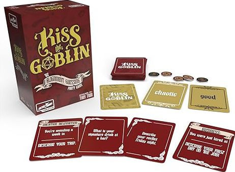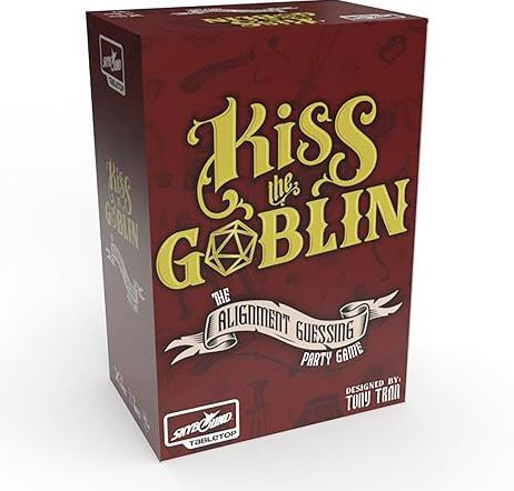 A wealthy,but horrible, goblin has asked for your hand in marriage! How do youreact? Would you react differently if you were playing a chaotic good character? Whatabout lawful evil? Kiss the Goblins is a party game where you describe how you wouldreact to outrageous situations while trying to communicate a secret alignment. Utilizingthe popular tabletop role playing game alignment system, a player will try to share theirsecret alignment, be it Chaotic Good, Lawful Evil, or others when describing how they'dreactin both common settings and fantasticalsituations.