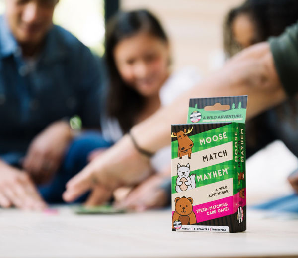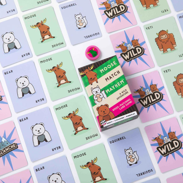 Ready for a wild adventure? Moose Match Mayhem is the speed-matching card game that creates a herd of excitement! Perfect for ages 7 and up, this fast-paced family game is ideal for game nights, parties, and on-the-go fun! From the makers of the best-selling "Taco Cat Goat Cheese Pizza,” this game promises a captivating experience every time you play. And with a quick, 10-minute play time, you can make lasting family memories any time with Moose Match Mayhem!