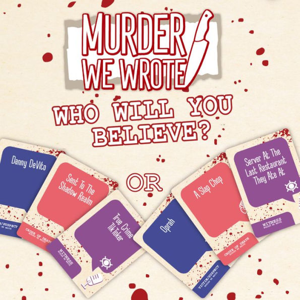 Get ready for mystery, intrigue, and a bit of morbid fun! Murder We Wrote is a true crime podcast themed adult party game for 3 to 8+ players. As the host of the podcast, you reveal the name of the victim for that round. Each other player will assume the role of someone close to the victim, playing cards, and giving an interview on who they think murdered the victim and how.At the end of the round, the host will decide what the true ending is... but watch out, each player has a hidden twist card that can change everything! With hundreds of different potential victims, murders, deaths, and twists, there are infinite stories to tell!