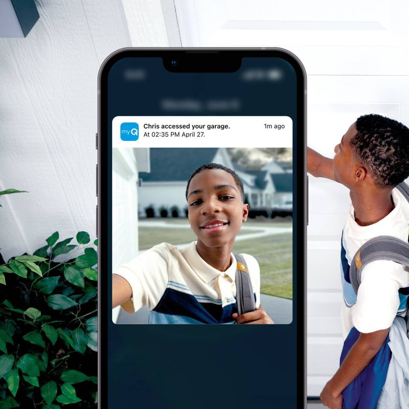 - Real-Time Alerts: The myQ app will notify you when your garage has been accessed with a PIN code or a person has been seen by the camera.