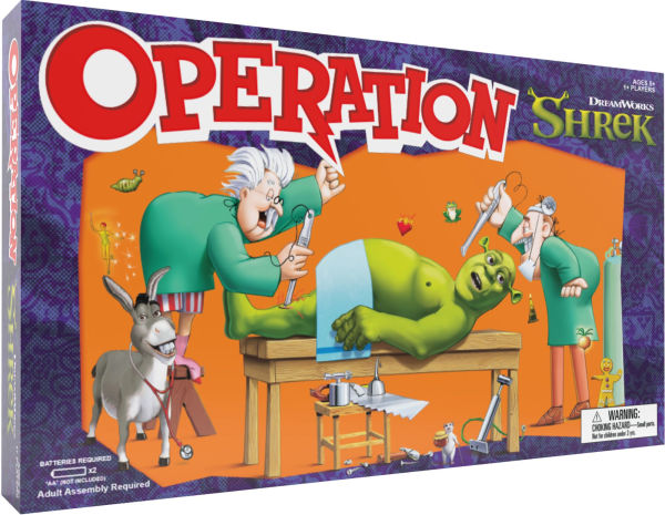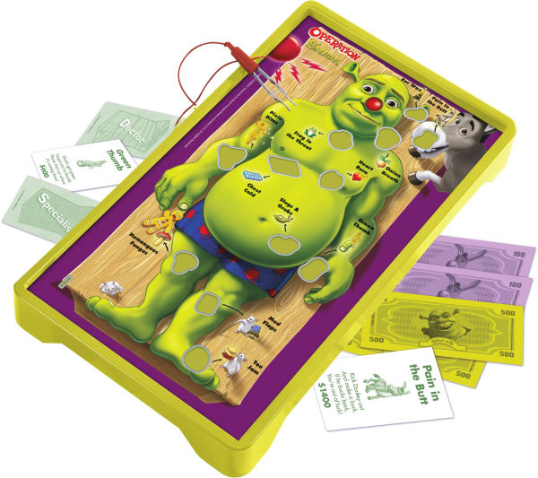 Welcome to Operation: Shrek where poor Shrek is sick, so he needs you to operate quickly! Use a steady hand and forceps to remove his comical ailments: Ear Wax, Toe Jam, Onion Breath, and many more! Are you skilled enough to remove his ailments so he can get back to the swamp? Or will you cause an ogre-sized buzz?