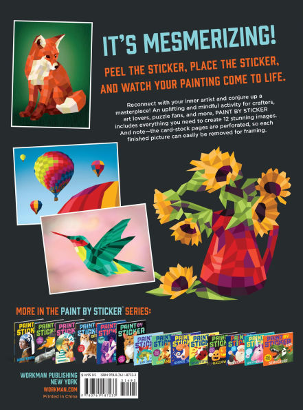 Reconnect with your inner artist and conjure up a masterpiece! An uplifting and mindful activity for crafters, art lovers, puzzle fans, and more, PAINT BY STICKER includes everything you need to create 12 stunning images. And note—the card-stock pages are perforated, so each finished picture can easily be removed for framing.