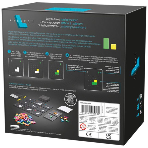 Project L is a fast-paced, tile-matching brain burner with triple-layer 3D puzzles and lovely acrylic pieces. Challenge your friends to a game of simple design but intricate gameplay that makes a lasting impression! The core of the game lies in using your pieces to complete puzzles. Starting with just two basic pieces, you use three actions every turn to develop a powerful engine. With more pieces of various types, you can efficiently complete even the most difficult puzzles. The puzzles you complete award you points or new pieces to further fuel your engine. Can you outsmart your opponents?