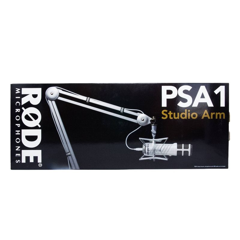 The PSA1 is a studio boom arm for radio, broadcast, studio and home use. It provides full 360 degree rotation. The PSA1 has a horizontal reach of 820mm(32.3 inches), and a vertical reach of 840mm (33.1 inches). It is supplied with velcro cable wraps and both desk-clamp and desk-insert style attachments for versatile mounting in desks up to 55mm (2.2 inches) thick (clamp) or 70mm (2.76 inches) insert.Designed for the RØDE Procaster and Podcaster, the PSA1 supports most microphones weighing between 700g (1.5lb) and 1.1kg (2.4lb) when combined with shock mount. Please note that the PSM1 shock mount is sold separately.