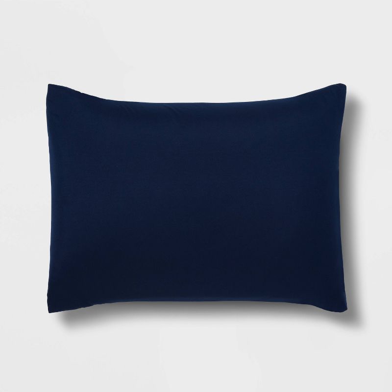Give an elegant update to your bedroom ensemble with this Solid Microfiber Comforter & Sheets Set from Room Essentials™. The comforter features patterned stripes on a white background that reverses to a solid color on the other side, making for a striking and easy-to-switch-up look that's perfect for any bedroom decor. The five-piece bedding set also includes a flat sheet and fitted sheet with coordinating stripes, along with a matching pillowcase and pillow sham with stripes or a solid-color design.