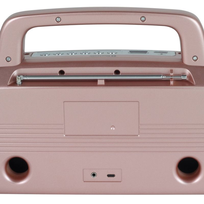 The SB2006 combines classic charm with modern convenience, giving you the best of both worlds. Tune into your favorite AM/FM stations with the backlit dial scale or stream your favorite playlists or podcasts wirelessly via Bluetooth Connectivity. The built-in stereo speakers deliver powerful sound whether you're playing MP3s through the USB port or connecting via Aux-in. With the unit's built-in rechargeable battery, portable handle, and USB-C Charging, it’s designed to follow you from room to room or out on the go. Perfect for music lovers who crave a retro feel while retaining versatility in one stylish, portable package.