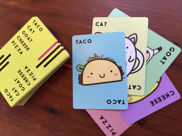 Taco! Cat! Goat! Cheese! Pizza! is as unique as its name. It's a power packed quick and simple punk party game. This is a high octane rowdy cousin to Slap Jack and Irish Snap, and it's filled to the brim with hand slapping mayhem!