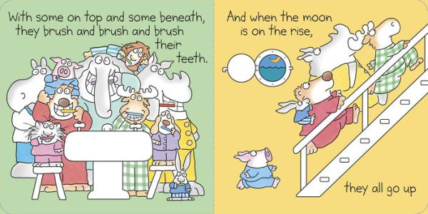 This classic bedtime story is just right for winding down the day as a joyful, silly group of animals scrub scrub scrub in the tub, brush and brush and brush their teeth, and finally rock and rock and rock to sleep.