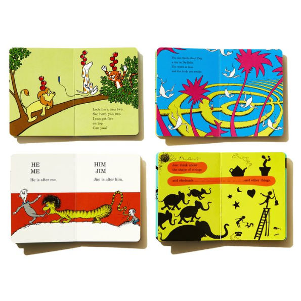 Tucked inside this cute little blue box topped with a plastic handle and secured by a tuck closure are board book editions of the classic Dr. Seuss titles Hop on Pop; Oh, the Thinks You Can Think!; Ten Apples Up On Top!; and The Shape of Me and Other Stuff. Ideal for the holidays, new mothers, and happy occasions of all kinds, this is a literacy-nurturing gift that babies can literally sink their teeth into!