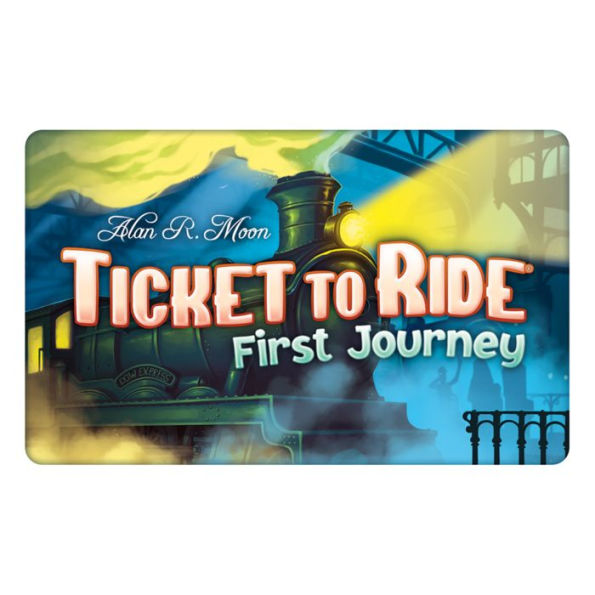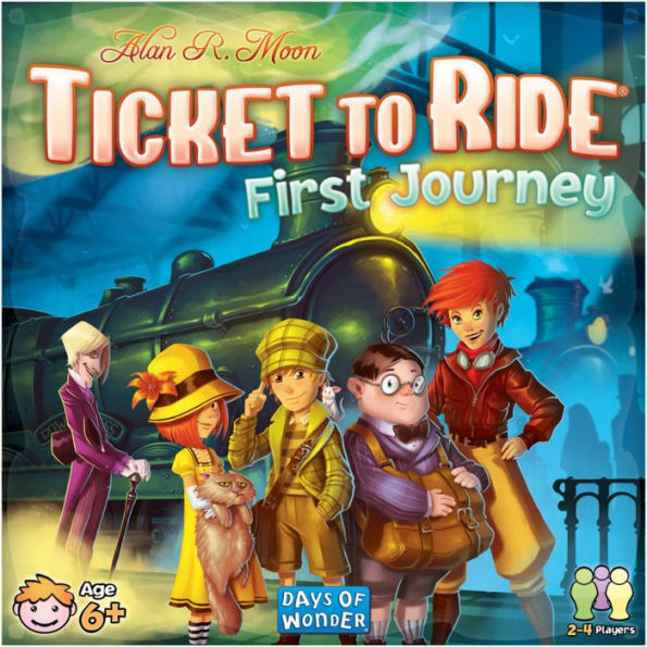 Players of all ages can now venture across America by train in Alan R. Moon’s Ticket to Ride: First Journey. With a brand-new map and simplified rules, First Journey is the perfect way to introduce new players to the game of cross-country travel. Just like in Ticket to Ride, players collect train cards, claim routes, and try to connect cities coast-to-coast. In First Journey, though, routes are shorter, train cards are drawn straight from the deck, and the game ends when one player completes six tickets, claiming the Golden Ticket as their prize. Climb aboard, travelers, your incredible First Journey awaits!