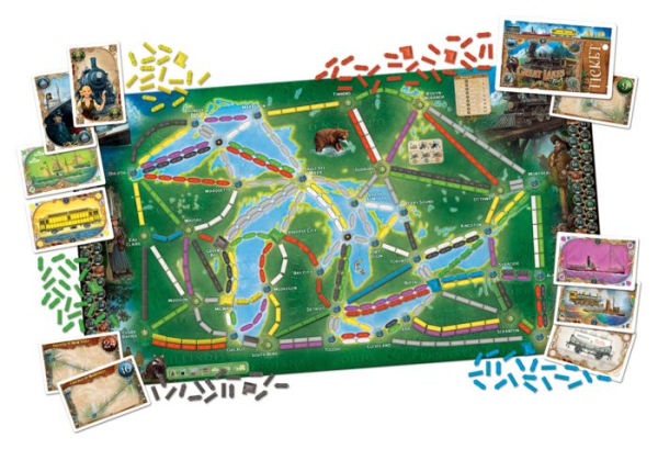 Ticket to Ride Rails & Sails is the new installment in this best-selling train adventure series. Players collect cards of various types (Trains and Ships) that enable them to claim railway and sea routes on a nicely illustrated double-sided board, featuring the world map on one side and the Great Lakes of North America on the other. Elegantly simple and fast to learn, it takes the Ticket to Ride series to the next level! Veteran railroaders as well as family and friends will be delighted to set sail to the new horizons of Ticket to Ride Rails and Sails...
